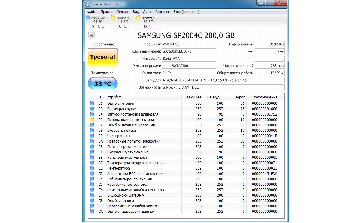 Долго не мог определить, в чём конкретно проблема. Сначала думал на видеокарту, спросил на форуме Gigabyte, но после того, как я выложил скриншот S.M.A.R.T., мне сказали, что там видно очень большое количество ошибок чтения и позиционирования и проблема скорее всего именно в жёстком диске. Действительно ли это так?