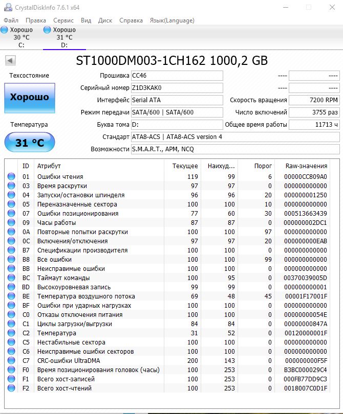 >>>При использовании Crystal Disk Info в меню Сервис>Дополнительно>Raw-значения выберите вариант "10 [DEC]" это несколько упростит восприятие информации утилиты форумчанами.<<<