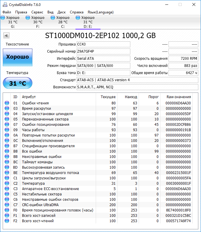 >>>При использовании Crystal Disk Info в меню Сервис>Дополнительно>Raw-значения выберите вариант "10 [DEC]" это несколько упростит восприятие информации утилиты форумчанами.<<<