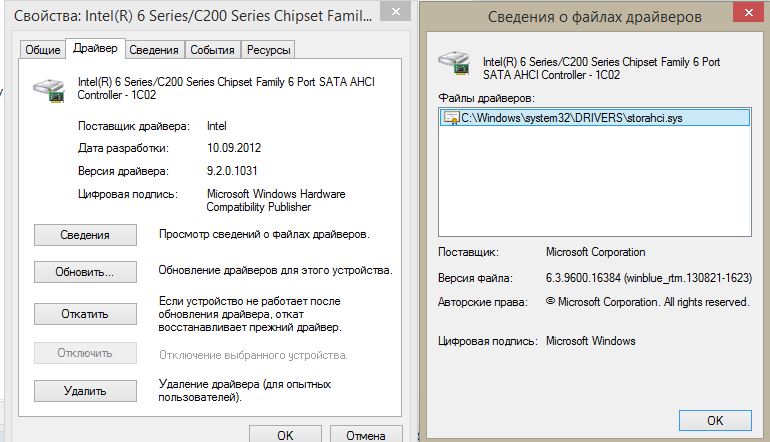 Maveric Что всё хорошо это хорошо, но я бы заменил v9.2 на максимально поддерживаемую официально 12.9.4.1000, раз уж вы решили юзать драйвер Intel, или тогда хотя бы на стандартный системный. Проверьте с TrimCheck что там с TRIM сейчас, в v9.2 вроде проблемы могут быть, слишком уж стара.