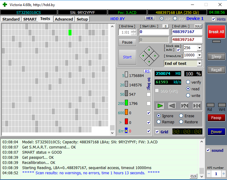 Доброго времени суток 1.5 года назад купил ж.д. сделал тест викторией, скрины сохранил, на днях сделал тест викторией снова. Как-то многовато зеленых секторов. Какие-то действия предпринимать нужно?