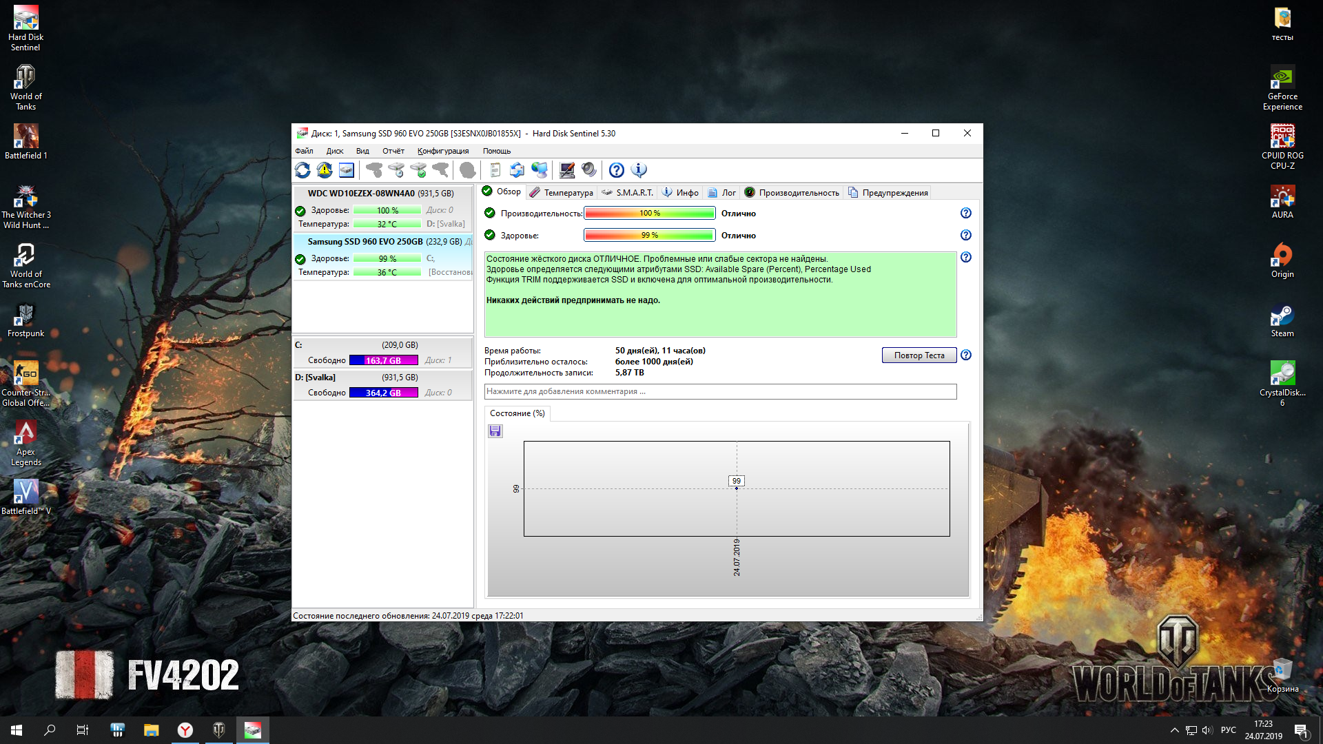На всякий случай рекомендуется несколько дней понаблюдать за объёмами записи на накопитель с помощью SsdReady, потому как встречаются приложения, в определённой конфигурации генерирующие десятки гигабайт записи (на этом попадались защиты некоторых игр, антивирус Касперского, а также браузеры Google Chrome и Mozilla Firefox с некоторыми дополнительными расширениями).