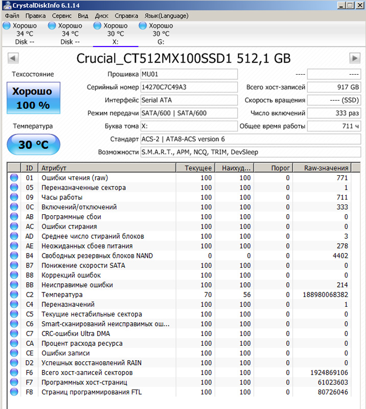 прикладываю скрин с Кристал Диск Инфо