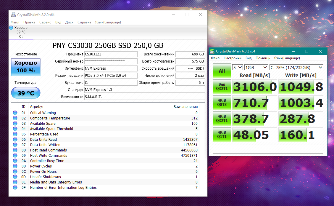 В системе 2 диска NVME PCI-e: Samsung 970 EVO Plus 500Gb и Transcend 220S 1TB TS1TMTE220S Собирал новый компьютер и были установлены оба диска одновременно из упаковки. Самсунг используется, как системный диск С (windows 10 1903) + софт Трансценд, как диск Д для игр, и рабочих папок. Решил посмотреть сейчас смарт обоих дисков и меня удивила строка общее время работы. У самсунга 20 часов, у трансценда 44 часа. Фактически верное показание должно быть 44 часа. Вопрос: самсунг занижает в 2 раза время наработки или есть какой-то нюанс? ps. прошивки последние.