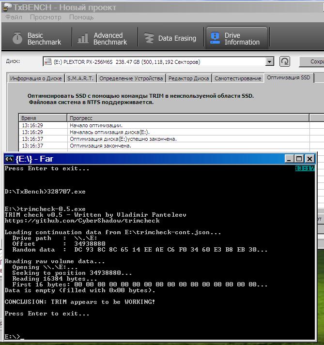 КТ У вас, если не ошибаюсь, есть комп с WinXP и чипсетом AMD на матплате. Проверьте, плиз, оптимизацию диска (см. скрин) отсылкой команды TRIM — при помощи утилиты TxBENCH.
