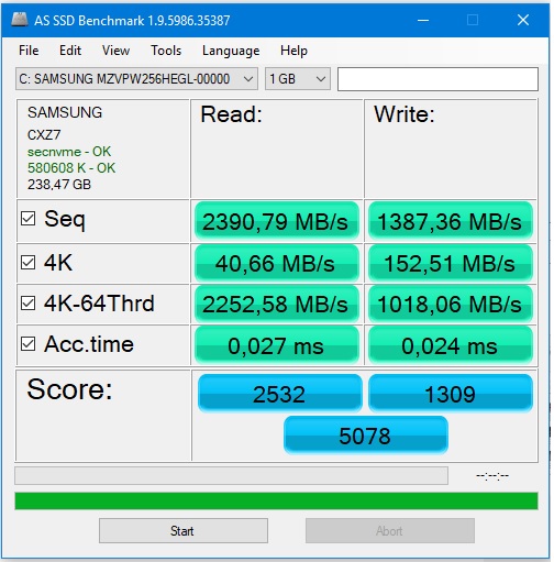 Всем привет, вообщем приехал мой SM961 на 256 гиг. Вот результаты тестов кому интересно. Система - Asus Z170 Pro Gaming, Винда 10, драйвер от Самсунг. Извините , не знаю как под спойлер загнать картинки