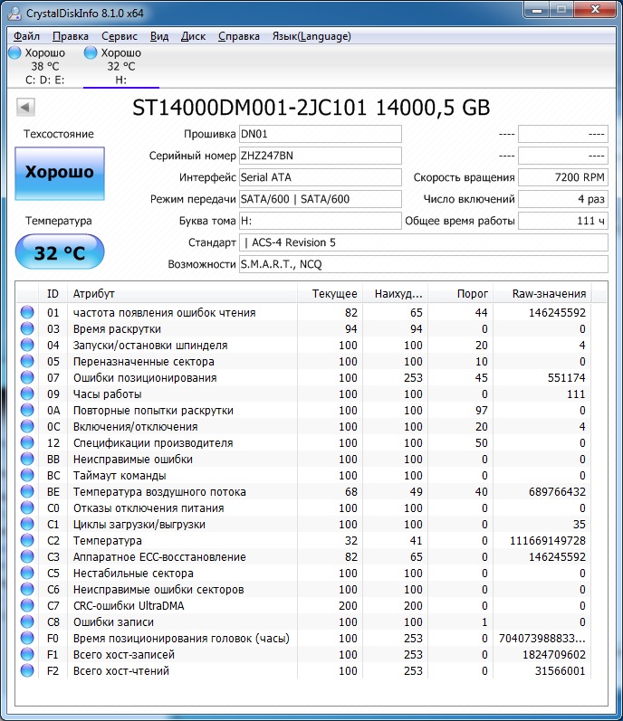>>>При использовании Crystal Disk Info в меню Сервис>Дополнительно>Raw-значения выберите вариант "10 [DEC]" это несколько упростит восприятие информации утилиты форумчанами.<<<