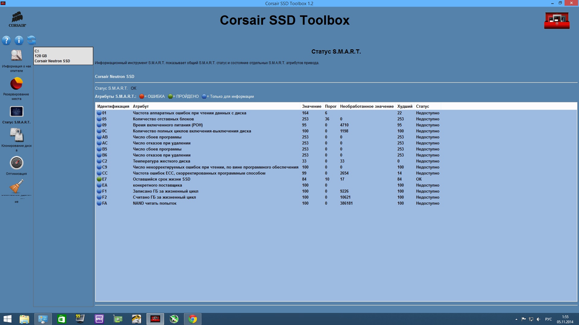 С оговоркой эксплуатации на штатном драйвере msahci (драйвер Intel [он же iaStorA, IRST] на контроллер SATA не ставить): - SmartBuy Ignition 2, GoodRAM C50/100, PQI S522, Corsair Force LS 240 Гбайт**, Patriot Blaze 240 Гбайт*** и прочие Phison-based (контроллер Phison; за полным списком лучше заглянуть в FAQ); Проблема заключается в падении скоростных характеристик на операциях записи. По отзывам, встречается при прошивке версии 7.7. Исправляется обновлением прошивки до версии 7.9 (после чего может потребоваться выполнение Secure Erase).