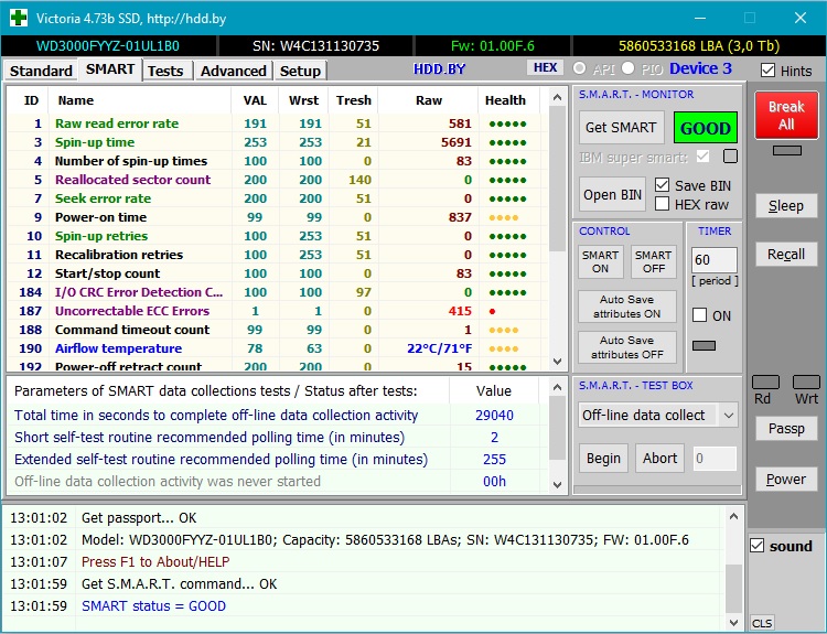 >>>При использовании Crystal Disk Info в меню Сервис>Дополнительно>Raw-значения выберите вариант "10 [DEC]" это несколько упростит восприятие информации утилиты форумчанами.<<<