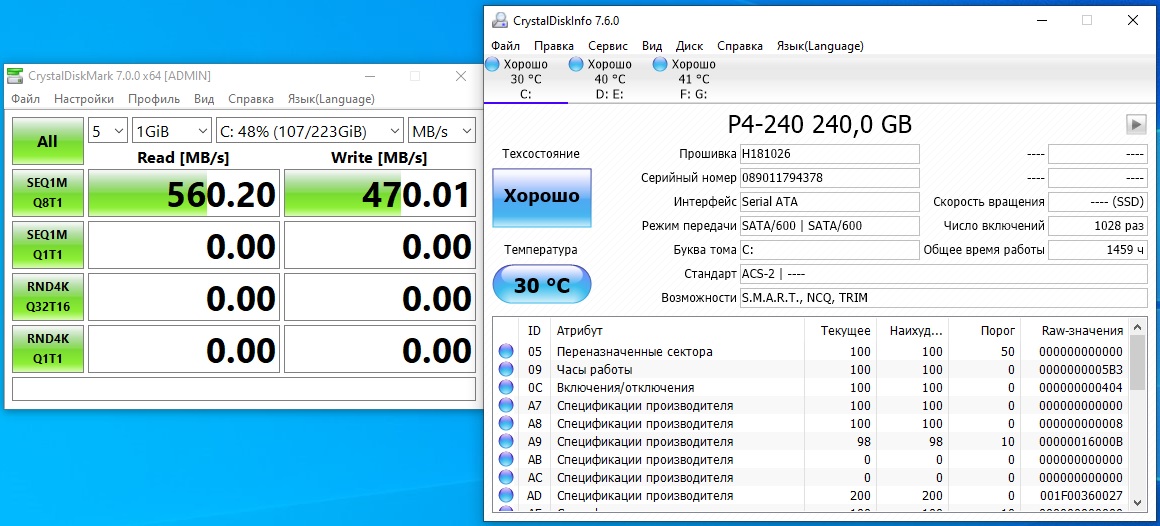 Добрый день есть такая проблема SSD Crucial MX500 500GB, периодически нет доступа к данным через проводник, хотя система грузиться без проблем, приложения со стола работают выражается в том что при доступе на раздел проводник виснет и не реагирует ни на что после ребута может заработать,а может и не заработать, раз на раз не приходиться скрин смарт прикрепил