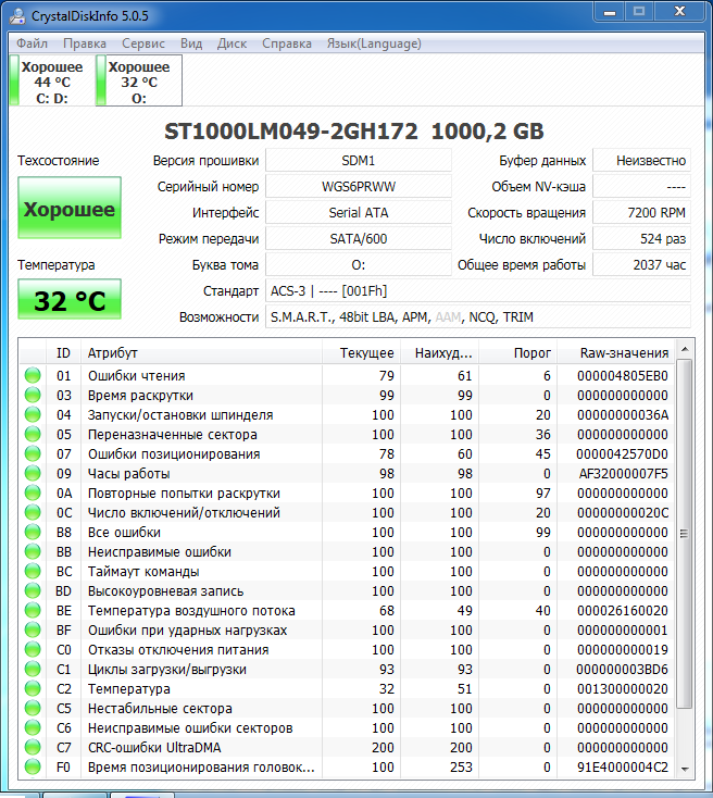 >>>При использовании Crystal Disk Info в меню Сервис>Дополнительно>Raw-значения выберите вариант "10 [DEC]" это несколько упростит восприятие информации утилиты форумчанами.<<<