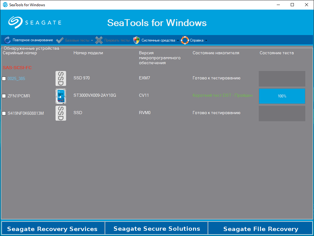 Установить утилиту, прогнать тест (сначала "Short" - короткий, потом "Long" - длинный). Если тест "провалился", то заполнить заявку на гарантию на том же сайте Seagate.