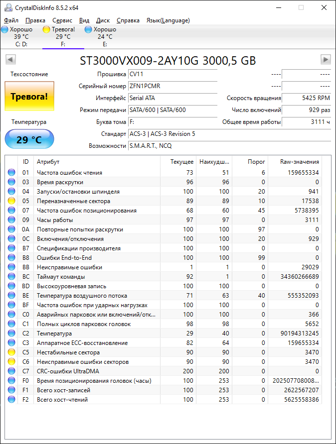 >>>При использовании Crystal Disk Info в меню Сервис>Дополнительно>Raw-значения выберите вариант "10 [DEC]" это несколько упростит восприятие информации утилиты форумчанами.<<<
