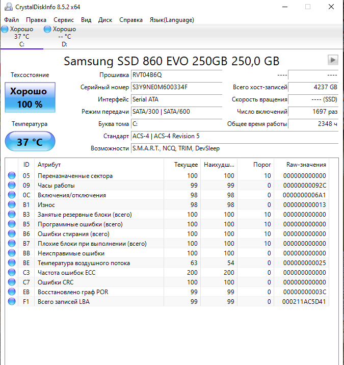 То что на скрине в изначальном сообщении выше показано в CrystalDiskInfo, - там почему-то нет деталей (!??). Так я не понял, там что, CrystalDiskInfo установлен с ошибками(?) или работает CrystalDiskInfo с ошибками?... Или детали умышленно стёрты со скрина??