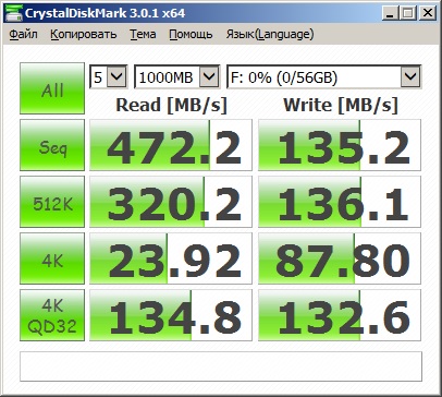 Не кипятитесь. И да-с ним что-то не так. Чтение 4К должно быть около 35 МБ/с, а не 27, ну а запись должна быть вообще почти в 2 раза выше. Но я так понимаю, вы-"свидетель последовательных скоростей" и на 4к вам начхать, ну что ж, каждому своё.