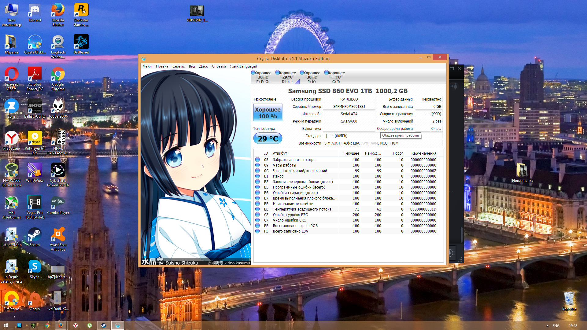 7. Для того что бы оценить состояние диска SSD воспользуйтесь прогнраммой Crystal Disk Info. Перед выкладыванием скриншотов Crystal Disk Info в меню Сервис>Дополнительно>Raw-значения выберите вариант "10 [DEC]" это несколько упростит восприятие информации.