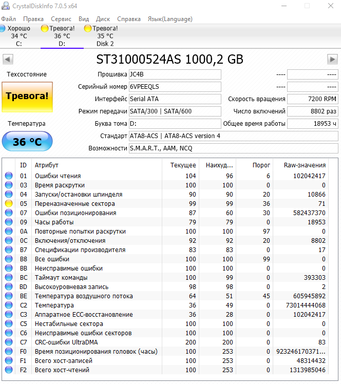 по С7 пока ничего не скажу, ибо внимания не обращал. Могу позже сказать, растет или нет. Странно это все, конечно, ибо жесткий никогда не перегревался и наработал не так и много часов. Хотя есть в системе еще один, который с мусорки притянули. У него уже было 20 тыс часов и куча бедов. Но 7 тысяч еще накрутил и не откинулся.