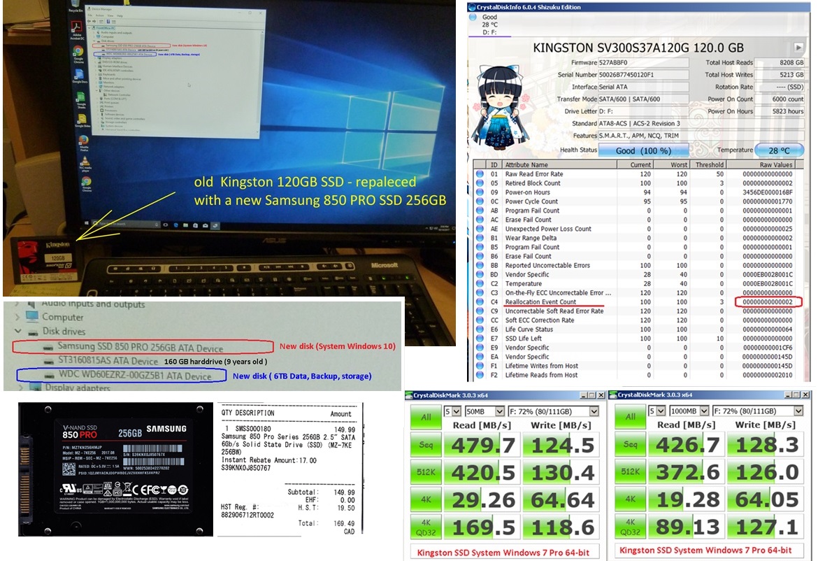 Мда, здоровье моего SSD (HFS256G3BTND-N210A) на 256 гиг менее, чем за месяц уехало с 20 процентов до 18ти.. по какому принципу - фиг пойми. Ну покачиваю иногда файлики там гиг-два.. ) Может конечно реально "повезло" с таким SSD при покупке относительно недорогого по своим возможностям бука.. и вроде как имеет смысл взять 256гиг SSD за ~30$ ,т к 128 гиг стоит в лучшем случае баксов 18 на алике .. но с другой стороны - а сколько записи он выдержит? Мне -то SSD реально нужен тока под систему,что ускоряет бук значительно,а файлы мне плевать,на чём хранить.. там и обычный 5400rpm 2.5" сгодится ) У меня SSD в общей сложности работает 520 дней, пусков/остановок 4861, всего записано 8,5 терабайт , прочитано 10,3 терабайта. Для примера - на игровом ПК стоит Plextor с 2012 года на 128 гиг.. файл подкачки вынесен на HDD. По-моему морочился вплоть до того,чтобы временные файлы браузера и прочий кэш оного - и то писалось на HDD )) Как итог - 9 лет работы..идеальное состояние. А в буке говорит,что 45 дней жизни осталось )) Я ж тут накопал, как мне установить второй HDD в слот, где должен был быть cd-rom. Уже и переходник с алика приехал. Так вот,если я планирую файл подкачки и всякие браузерные кэши по возможности воткнуть на HDD, то какой смысл тогда брать вместительный SSD? Да,чем он меньше,тем дороже за 1 гиг выходит,но мне по сути больше 64 гиг и не надо,я бы даже все программы установил на HDD.