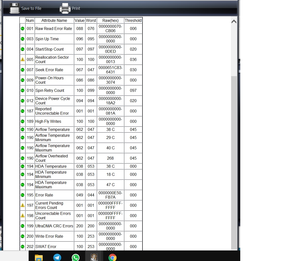 У вас там есть атрибут 170 Bad Block Count, сейчас значение (RAW) С7, но это вполне возможно заводские бэды потому что значение Current у атрибута 100. Просто следите чтобы значение RAW не менялось и Current не падало.
