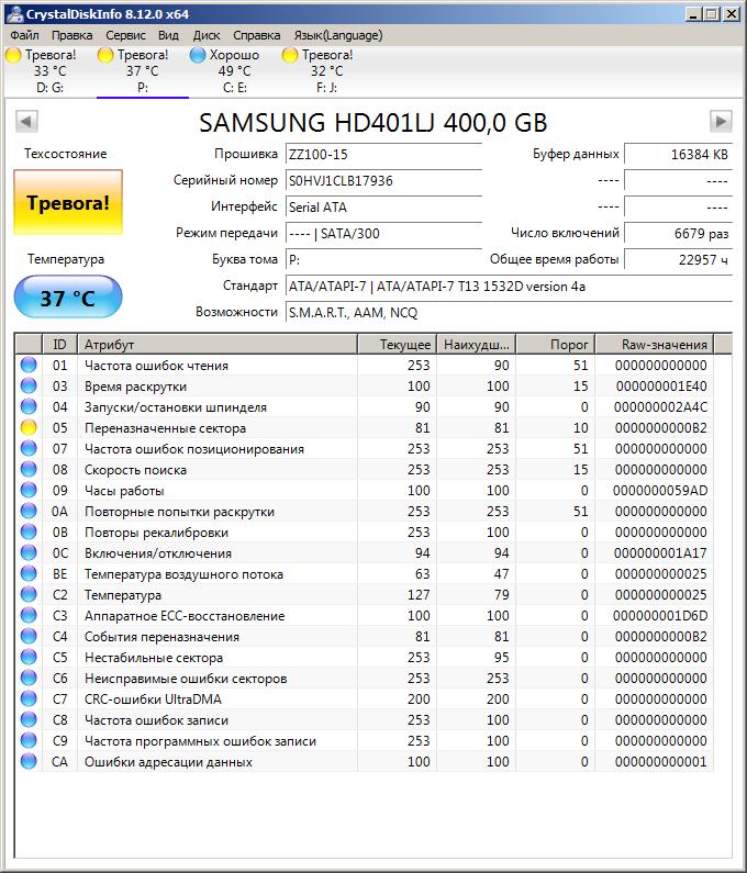 Добрый день! Недавно случайно поставил CrystalDiskInfo и прослезился. Хотелось бы узнать мнение профессионалов о хардах. Понятно, что пора сделать копию важных данных. Хотелось бы узнать, какой из этих 3-х дисков более живой, чем другие? Одному из них точно 15 лет уже. Остальным в районе 10.