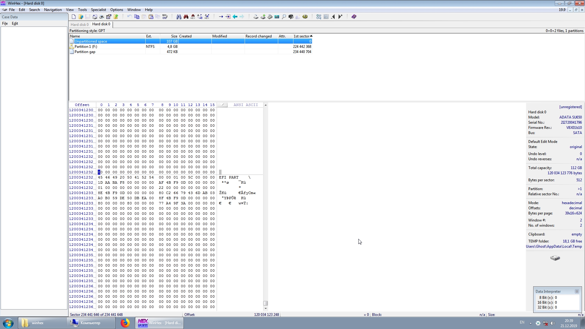 vlo Походу я облажался. В прошлый раз запустил winhex не от имени администратора. От имени администратора почти весь диск показывает нули. Как я понимаю это конец.
