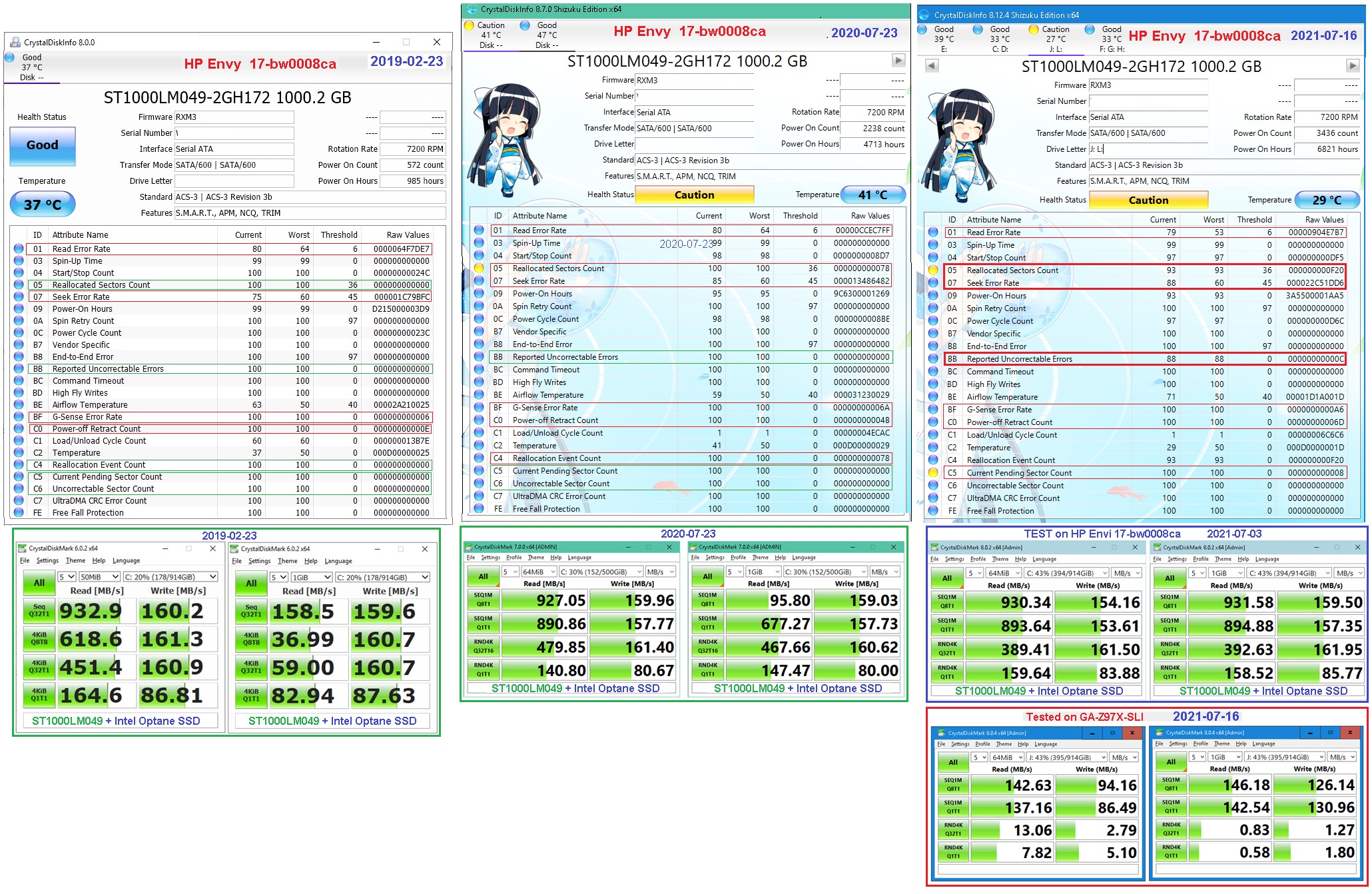 Seagate 1TB HDD изначально проваливал SeaTool тест и 'chckdsk /R' и тормознул на defrag. Ради эксперимента я обновил Win10 до 21H1, выполнил Disk cleanup, всё-таки завершил defrag, 'chkdsk /r,' сделал успешно бэкап и воостановления на 3 других диска, окончательно на установленный теперь 'WD Blue SN550 NVME'.