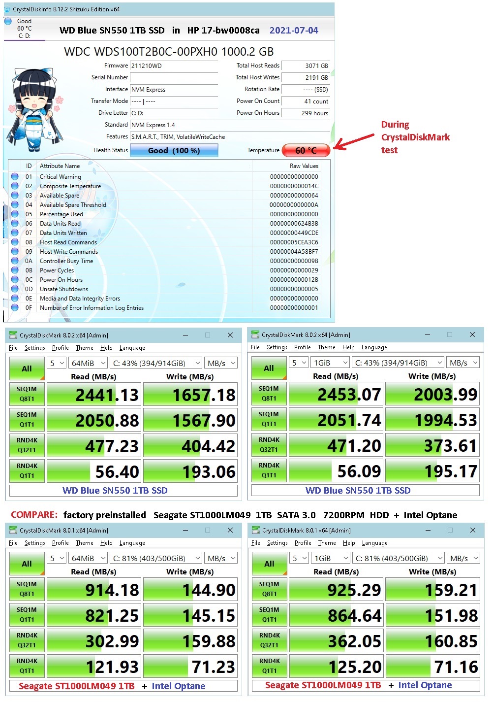 Может я поспешил с недавним апгрейдом c HDD на NVME SSD на девчачьем исключительно игровом 'HP Envy 17-bw0008ca' ? Как ранее отметил, я заменил HDD на 'WD Blue SN550 NVME PCIe 3.0 1TB'. И не получив возражений от пользовательницы на возможную переустановку начисто Windows и всех игр,