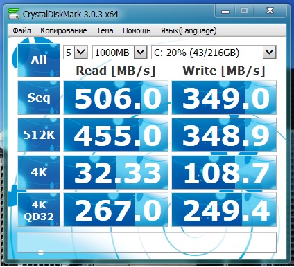 1. Переключаетесь в BIOS на AHCI (Если помимо SSD есть Raid-массив то там должен стоять RAID). Делается это до чистой установки Windows. Если производится перенос Windows Vista/7, то устанавливается патч Windows вот этим, для включения AHCI. Если AHCI не получается найти в BIOS, стоит поискать новую версию BIOS к мат.плате. Подключать SSD накопитель следует к чипсетным разъёмам, то же касается при выборе между чипсетным Sata II и Marvell/ASMedia/JMocron. 2. Скачиваете и ставите драйвер AMD_AHCI или Intel_RST Ссылки на драйвера ниже. (Устанавливать данные драйвера при желании/необходимости, по наблюдениям во многих случаях с драйвером IRST[для чипсетов Intel] в бенчмаркингах немного увеличиваются результаты, а с AMD[для чипсетов AMD] наоборот - при установке вместо стандартного msahci(win7) наблюдается ухудшение результатов). Поэтому для начала стоит запустить тест AS SSD Benchmark, затем поставить драйвер, убедиться что TRIM работает см.пункт 4, далее снова тест скорости. Если скорость упала (кстати, эффект может проявиться и не сразу, а лишь через некоторое время), то лучше вернуть Microsoft драйвер MSAHCI через диспетчер устройств. 3. Резервирование места на диске. Рекомендуется оставлять на накопителе всегда не менее ~10% емкости, чтобы уменьшить усиление записи и повысить эффективность работы ITGС и TRIM. Создание разделов выполняется по своему усмотрению. 4. Для того чтобы узнать работает ли TRIM воспользуйтесь программой TrimCheck. (Проверить включена ли поддержка TRIM в ОС можно следующим образом: необходимо набрать в командной строке fsutil behavior query DisableDeleteNotify (необходимы права администратора). Если ответ будет 0, то TRIM работает и включен. Если ответ будет 1, то включить TRIM можно командой: fsutil behavior set DisableDeleteNotify 0. По умолчанию в Windows 7 TRIM включен). 4.1. Для того чтобы увидеть драйвер под которым работает диск, включен ли AHCI и выровнен ли раздел, следует просто запустить программу: AS SSD Benchmark. #77#77 Если выровнен и включен AHCI, то строка с выравниванием - зеленого цвета и заканчивается ОК. Если нет, то строка красного цвета и заканчивается BAD. Выравнивать с помощью Paragon Alignment Tool (PAT). 4.2. Для того что бы оценить состояние диска SSD воспользуйтесь SMART-монитором Crystal Disk Info. Перед выкладыванием скриншотов Crystal Disk Info в меню Сервис>Дополнительно>Raw-значения выберите вариант "10 [DEC]" это несколько упростит восприятие информации утилиты форумчанами. SSDLife показывает общую инфу о SSD и прогнозирует срок жизни. Прогноз её очень посредственный и вряд-ли ему стоит верить. 5. Отключить очистку буфера кэша записей Windows для этого устройства - галочка должна отсутствовать. Разрешить кэширование записей - обязательно включено. 6. Ставить на SSD рекомендуют Windows 7 и более новые (не Vista/XP/2003 и т.д.), а также Linux с ядром 2.6.33 и новее. Т.к. только в них реализована поддержка TRIM, при установке разделы создаются выровненными и по умолчанию произведены некоторые оптимизации. Хотя использовать SSD под управлением Windows XP можно, на накопителях с хорошей реализацией ITGC или при использовании стороннего софта для отправки на накопитель команды TRIM.