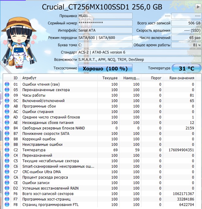 С оговоркой эксплуатации на штатном драйвере msahci (драйвер Intel [он же iaStorA, IRST] на контроллер SATA не ставить): - SmartBuy Ignition 2, GoodRAM C50/100, PQI S522, Corsair Force LS 240 Гбайт**, Patriot Blaze 240 Гбайт*** и прочие Phison-based (контроллер Phison; за полным списком лучше заглянуть в FAQ); Проблема заключается в падении скоростных характеристик на операциях записи. По отзывам, встречается при прошивке версии 7.7. Исправляется обновлением прошивки до версии 7.9 (после чего может потребоваться выполнение Secure Erase).