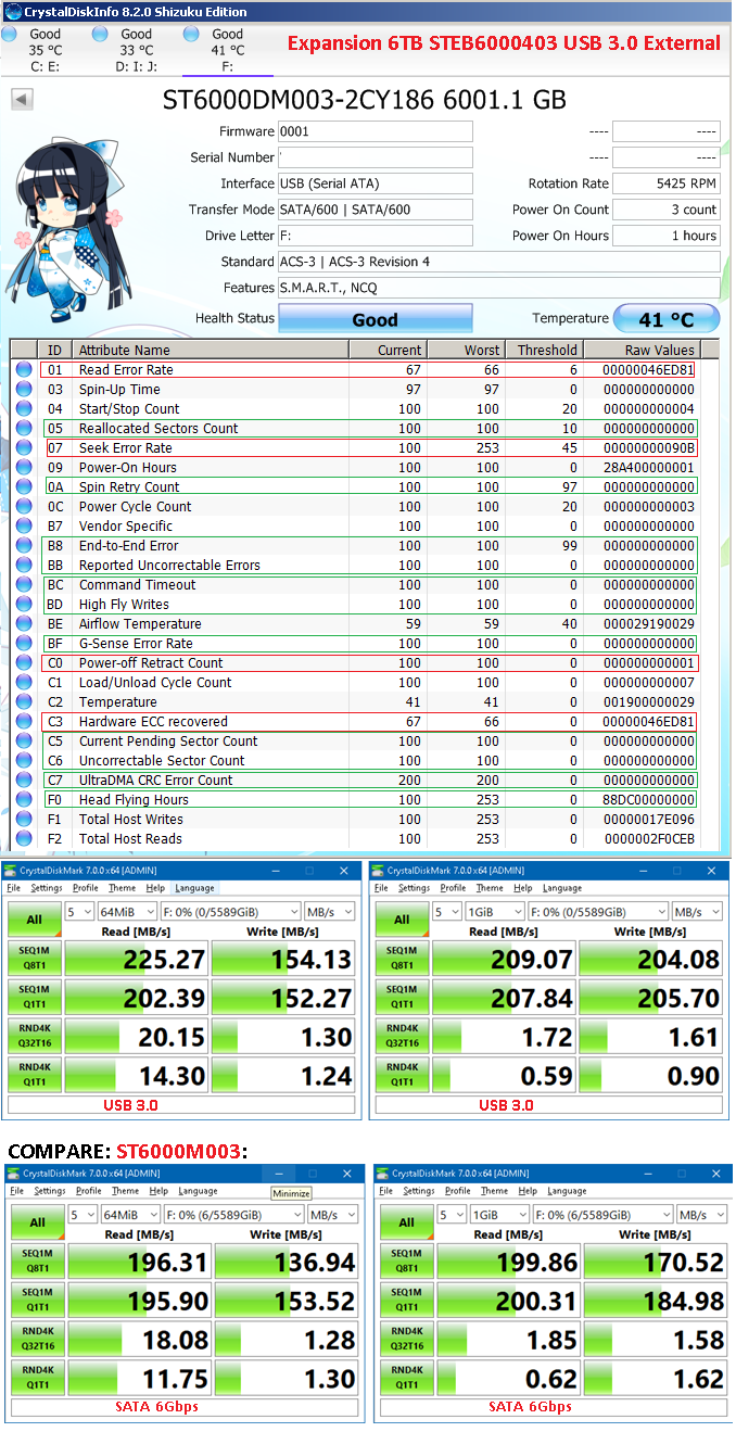 Да я бы отметил про те же самые параметры «Read Error Rate» и «Write Error Rate» которые видны у дисков всех производителей. На новых Seagate эти ошибки появлялись сразу, и я читал объяснение что для Seagate это мол нормально. Да я и не стал волноваться, - те новые Seagate как начали нормально работать и накапливать "ошибки", так много лет и продолжили нормально беспроблемно работать независимо от накопленных цифр. Что касается "WD скрывает появление первых нескольких дефектов на поверхности (бед блоков)" - мне приходилось читать объяснение - что это совфтвер НЕ начинает показывать сразу мгновенно самый первый зафиксированный "BAD", и/или потом НЕ каждый добавленный единичный "BAD", а показывает группой по мере превышения назначенного в софтвере порога срабатывания. - Как-то так. Где-то несколько лет ранее в этом форуме я по данному поводу приводил цитату что в SMART независимо от производителя отмечается не каждый единичный "BAD SECTOR", а лишь соответствующий условный параметр характеризующий накопленную группу "BAD".