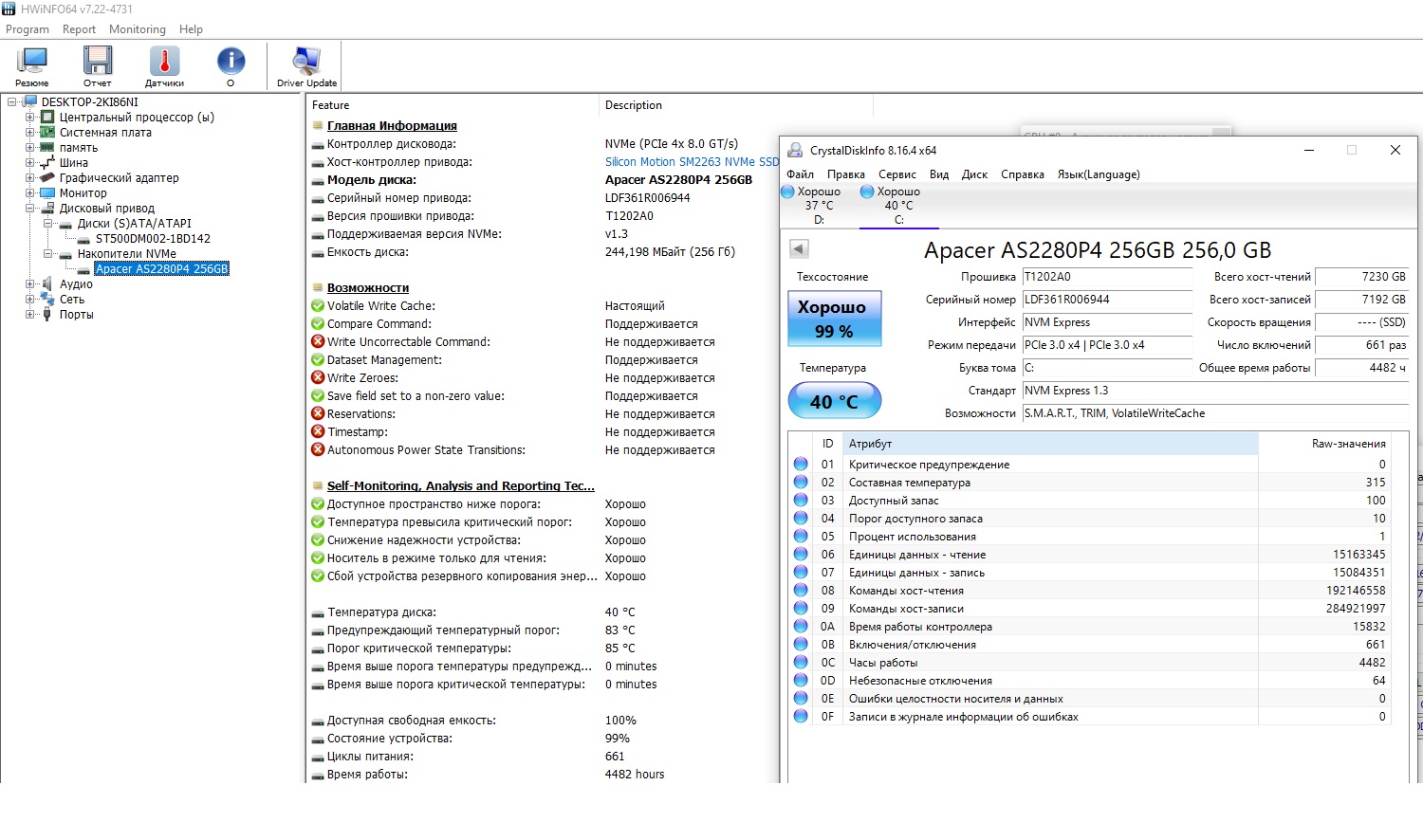 Реально! Не знал. НО - СМАРТ ССД он не увидел. Только старенький ХДД. Так что хвинфо не совсем корреткно предлагать смотреть смарт. Не умеет он полностью.