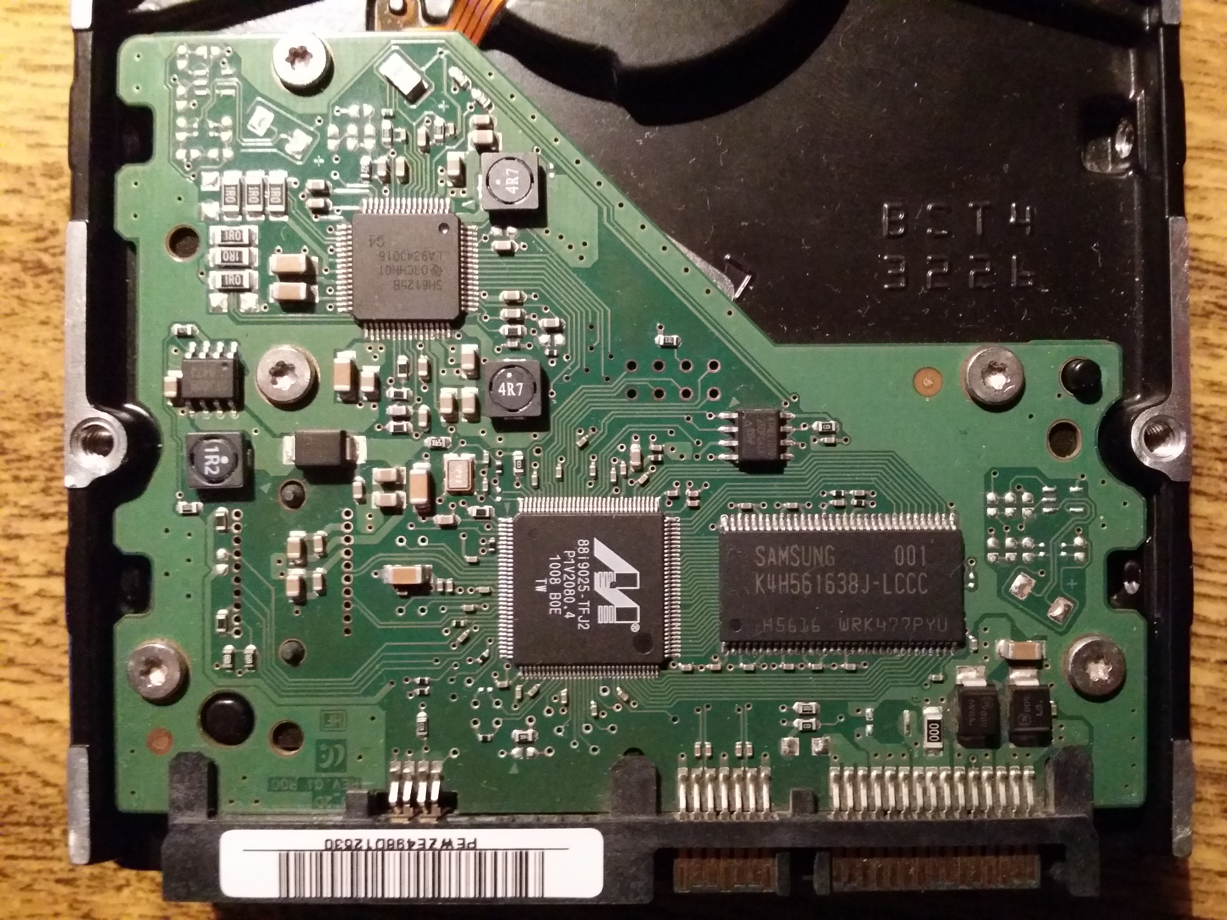 Собственно покупал жесткий диск Samsung HD 103SJ в августе 2010г. взамен провальной в то время партии Seagate(модель не помню), который сдох в течение пары месяцев. Работал ЖД верой и правдой мне до середины марта 2016г. Вечером выключил ПК, утром включил и биос не видит ЖД. Отдал его на диагностику, мне сказали тебе повезло(но не сказали насколько) механика целая, но вот драйвер двигателя ЖД полетел, и его замена стоит ровно столько за сколько я купил этот ЖД в 2010г умножив эту цену на 2. Естественно мне такой вариант не понравился и я стал искать более дешевый вариант восстановления этого ЖД, порывшись в интернете я нашел что это довольно таки распространенная проблема для этой модели ЖД, всю погоду делала микросхема SH6125B. Погуглив я нашел что чаще и проще эту вешь купить оптом от 5 до 10 штук, как раз за ту самую цену которую мне загнули в СЦ, но также были варианты купить поштучно и тут стал вопрос а кто же сможет перепаять мне ее. Я прошелся по СЦ моего города, в 1 из них мне сказали проще найти ЖД донор, у которого полетела механика, а плата живая. Порывшись у себя такой модели они не нашли, сказали чтоб я нашел такую плату и они мне ее поставят вместо моей. В других СЦ мне сказали у тебя не крутится двигатель, его сделать не реально(вот здесь важный момент - жд действительно не крутится, по логике если у него полетел драйвер двигателя - значит он и не должен крутится, но я засомневался и поэтому решил спросить у знающих людей здесь.) Есть у меня еще старенький Samsung SP 2004C (200gb), который через 4 года накрылся, у него как оказалась полетела механика, но если подключить питание он крутится. Вообщем, сбили меня конкретно. Я нашел в интернет магазинах 2 варианта этой платы, по сути в 4 раза дешевле цена чем мне предлагал СЦ(хотя он предлагал только сам чип или микросхему заменить). Если отбросить вариант того что мне втюхают не рабочую плату, возможно ли мне вернуть работоспособность моего ЖД с заменой этой самой платы? Ниже пара фотографий снизу и сверху