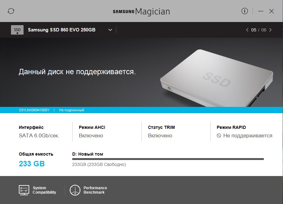 P.S. Все, Отбой! Оказалось, у меня стояла старая версия Samsung Magician 5.0.0. хотя сама программа при проверке писала "установлена самая последняя версия приложения". Я проверил на сайте самсунг там версия 5.3.0. Установил ее и диск определился как подлинный