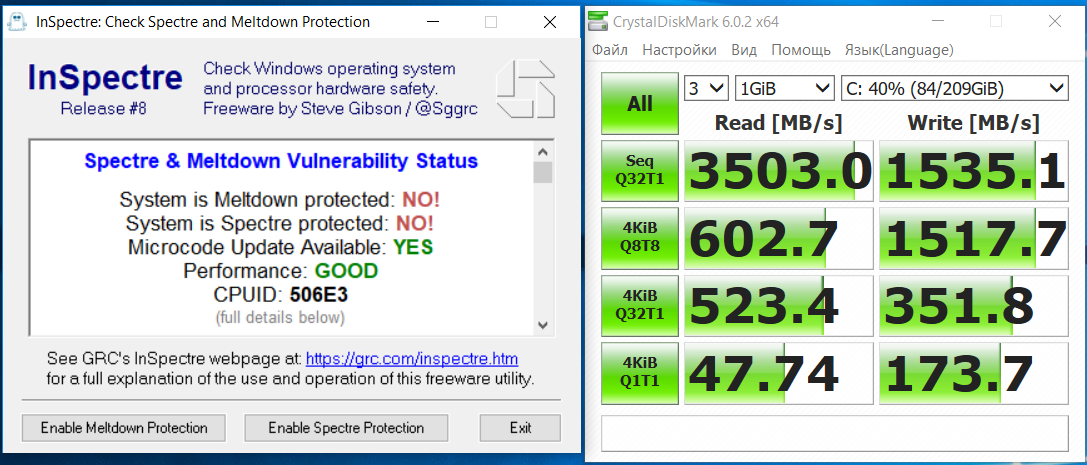 Обновил прошивку Intel ME firmware до последней версии, скорость работы ссд прилично выросла. А так же прогнал тест кристалмарк с выключенными патчами на meltdown/spectre, скорости еще значительно выросли.