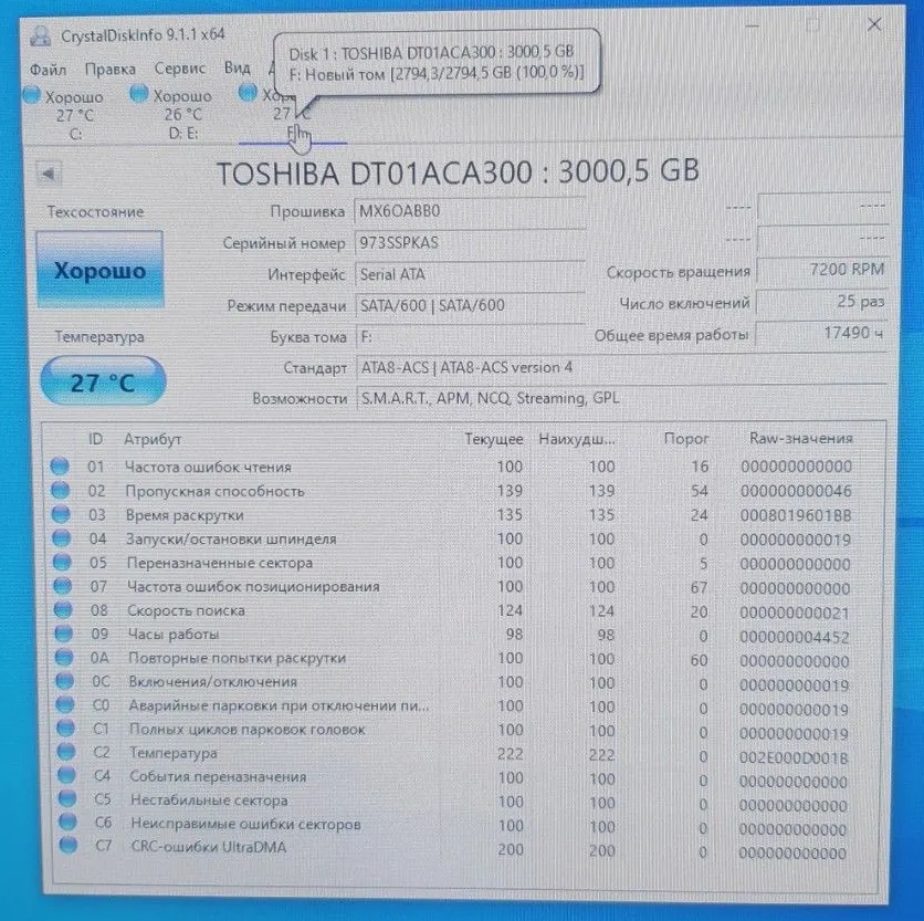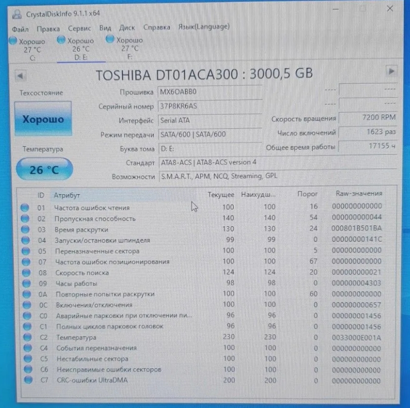 >>>При использовании Crystal Disk Info в меню Сервис>Дополнительно>Raw-значения выберите вариант "10 [DEC]" это несколько упростит восприятие информации утилиты форумчанами.<<<
