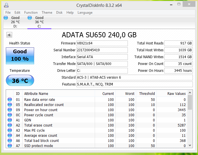 К сожалению мне тоже повезло с выбором ADATA Ultimate SU650 240GB прямо за несколько дней до НГ отвалилась и перестала определяться. Потом (chkdsk x2), правда определилась, но появилось некоторое число переназначенных секторов.