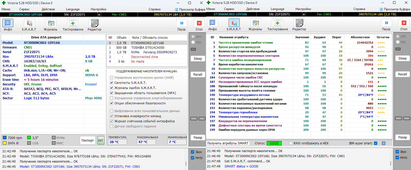 ессно, теперь 5860533168 посмотрим в общем сколько проживет. но по наработке 29к для серверного это ниочем, у меня ну естественно не нонстоп запись но в домашнем 500гб наработка 40+ все ок.