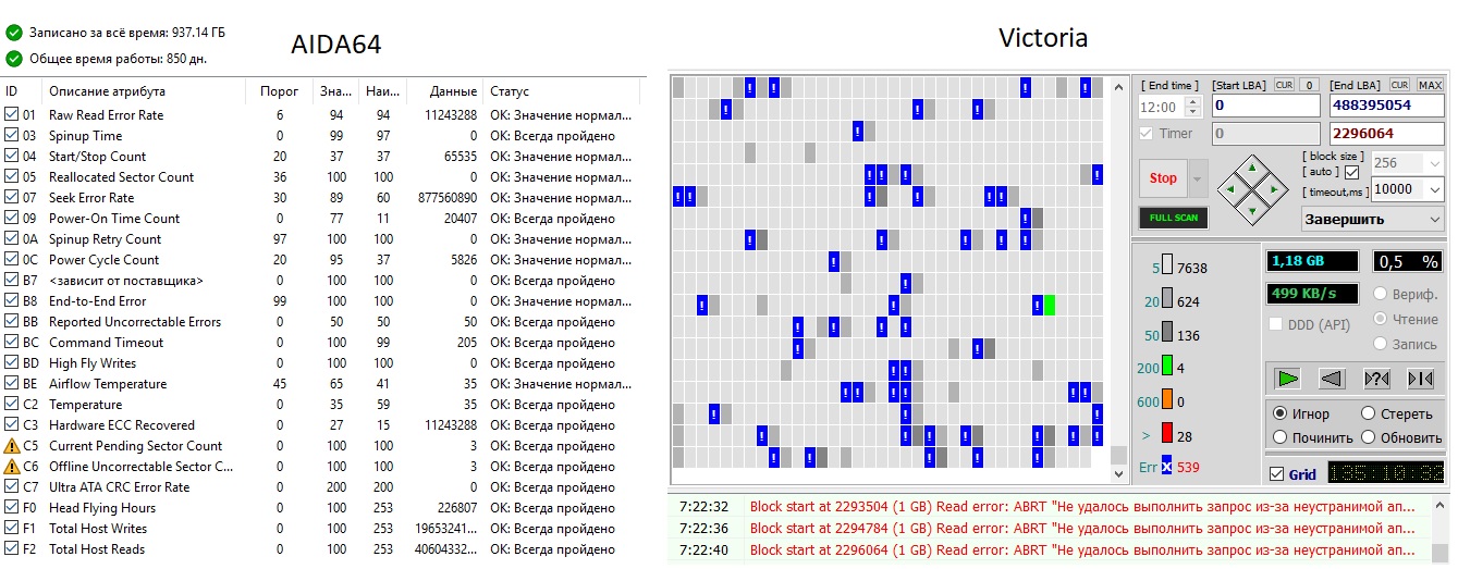 Пока пыжится Вика, на 1 гиг просмотренных = 500 мертвых кластеров. Из 250гиг общего. И оооочень туго идет. Диск конечно старичок-малютка, но вроде как мне и не надо было много. Но вчера стала сбоить винда при старте загрузки и кряхтит-щелкает что-то периодически. Вот думаю, а не он ли закапризничал недавно. (ОН, вытащил его - проблемы с виндой исчезли) с самим диском пока остались Стоит ли спасать? И как долго сможет пролежать отключенным в текущем малорабочем положении, чтобы потом можно было выгрузить информацию? Там в целом не так чтобы прям жизненно необходимые вещи сохранены. Фотки, программы, картинки и с 10 любимых фильмов в хорошем качестве. Пока снял ХДД, все равно нет куда переносить.