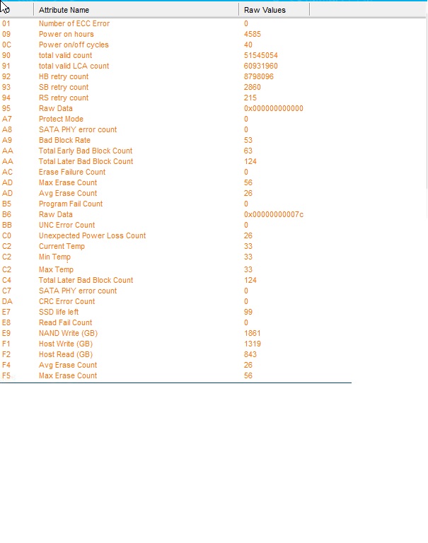 что касается s11 - у большинства прошивок есть выделенный slc-кеш, статистика которому в смарте недоступна (такие параметры вроде бы появились у s12). износ там на 1-2 порядок больше основного массива, равно как и ресурс (а с учетом что кеш все же сбрасывается, т.е. длительное хранение в нем не требуется, запас еще выше).