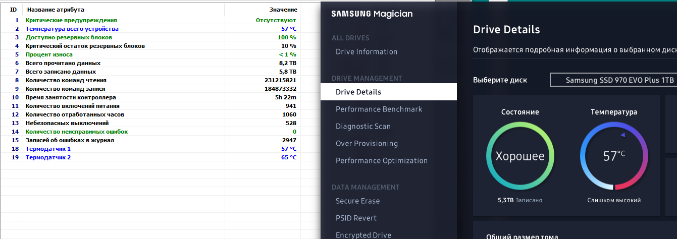 Возник другой вопрос: Обратил внимание, что при записи мой 970 evo plus заметно так греется (при записи 100 Гб разогрелся до 57 градусов), при этом в большинстве программ отображается только эта температура, но зайдя в викторию увидел "термодатчик 2" с заметно более высокой температурой (65 градусов). Показания с термодатчика 2 - это флеш? Насколько такие температуры критичны для бессвинцовой пайки? Может всё-таки стоит налепить радиатор на всю плату?