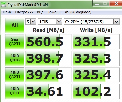 tydrtsytdes разница будет плавать до 30% в части показателей даже на одной машине в разные периоды эксплуатации, какие еще 7% и сравнение с абсолютно другим конфигом! Если бы ты никогда в жизни не видел пятихатку по скорости, можно было бы посуетиться, но ведь было 500 уже. Ну и еще тебе направление рытья, винда умеет снижать скорость интерфейса(контроллера) если видит много CRC ошибок на интерфейсе. А это 1) порт 2) кабель 3) разъем на винте. Короче смени кабель, грохни контроллер и высматривай чудеса)