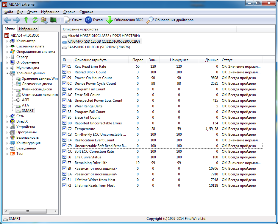 - Kingston SSDNow V300 (Kingston HyperX Fury полностью ему аналогичен) (контроллер SandForce SF-2281 + 20 нм MLC NAND); - SanDisk Plus G25 (не путать с G26)/SanDisk X400s (контроллер Silicon Motion SM2246XT + 19 нм MLC NAND/15 нм MLC NAND, накопитель нельзя забивать полностью, оставляйте не менее 12% пользовательского пространства свободными).