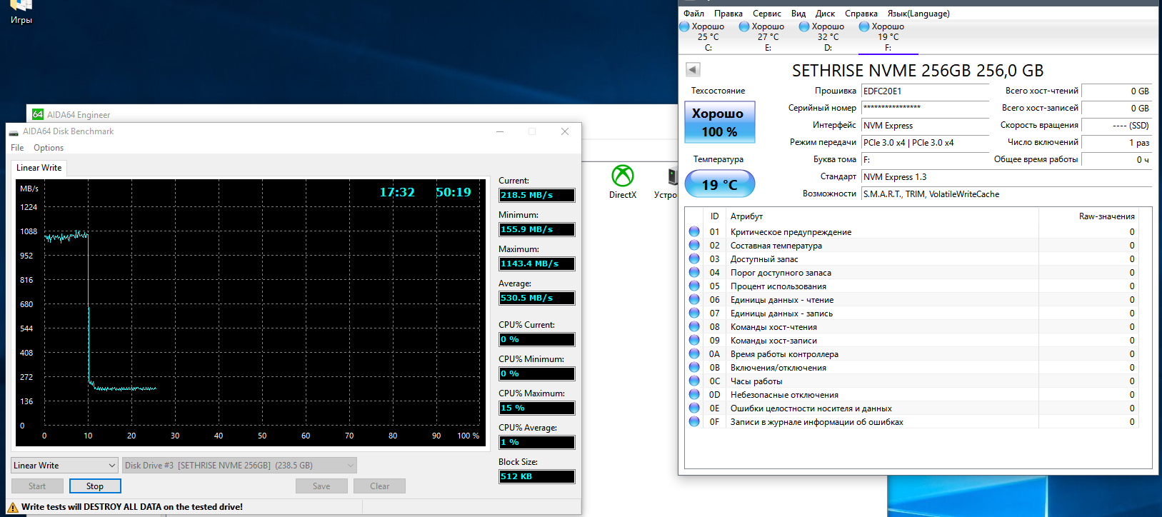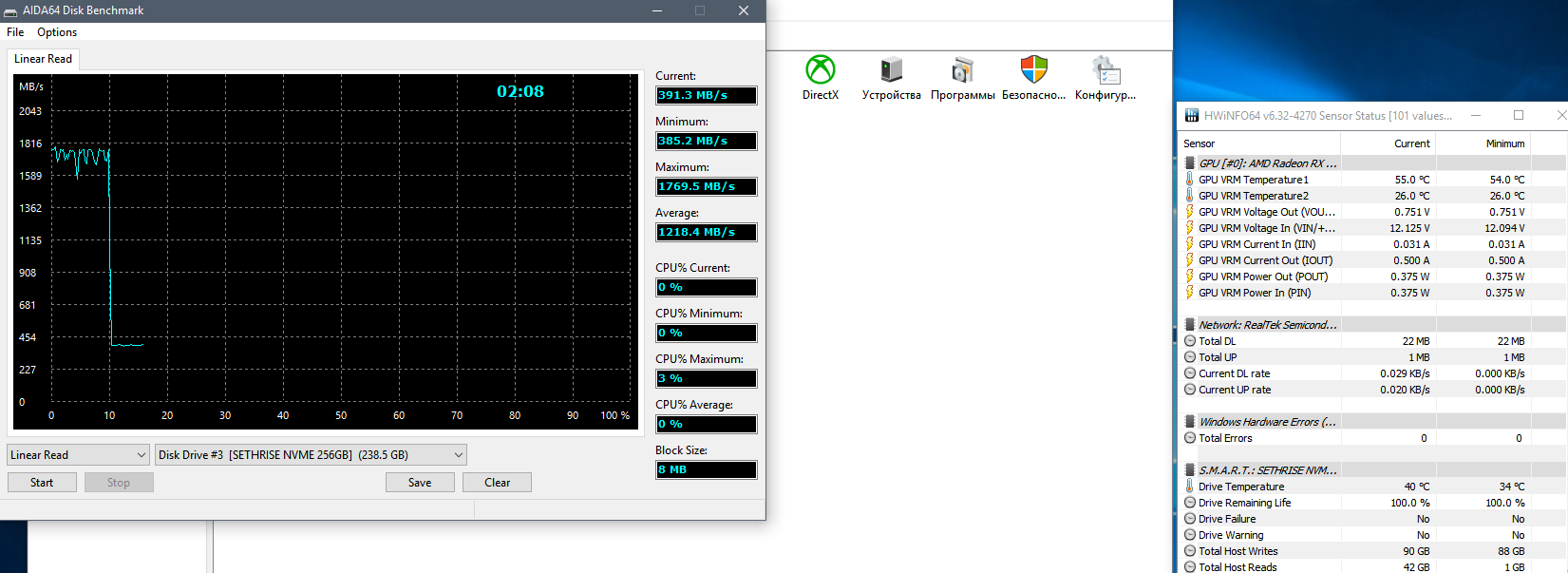 Вот так сейчас происходит чтение, когда на нем находится система, занято примерно 20Гб. а тут все в кеше пока.