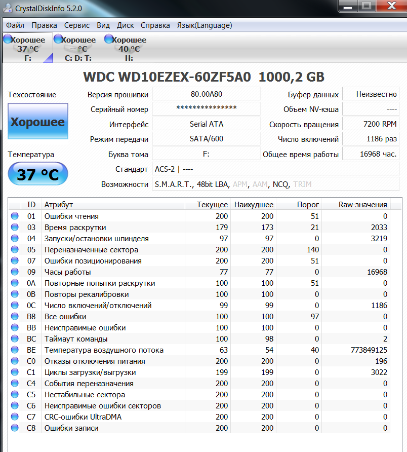 Мои WD'шки. Работают 24*7*365. В домашнем компе. Есть там ещё WD на 3ТБ, но он пока недостоин - всего каких-то 25000 часов. Ну а SSD... Тот вообще ребёнок.