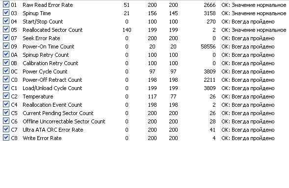 У меня 500 гиговый 27к часов)) 4 релокейтед сектора, тьфу-тьфу, не жалуюсь)