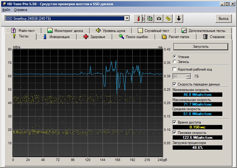 Но! Если график производительности с записанных данных Patriot Blaze 240G 7.9 ровный, то у Smartbay Ignition 2 240G 8.1 вот: