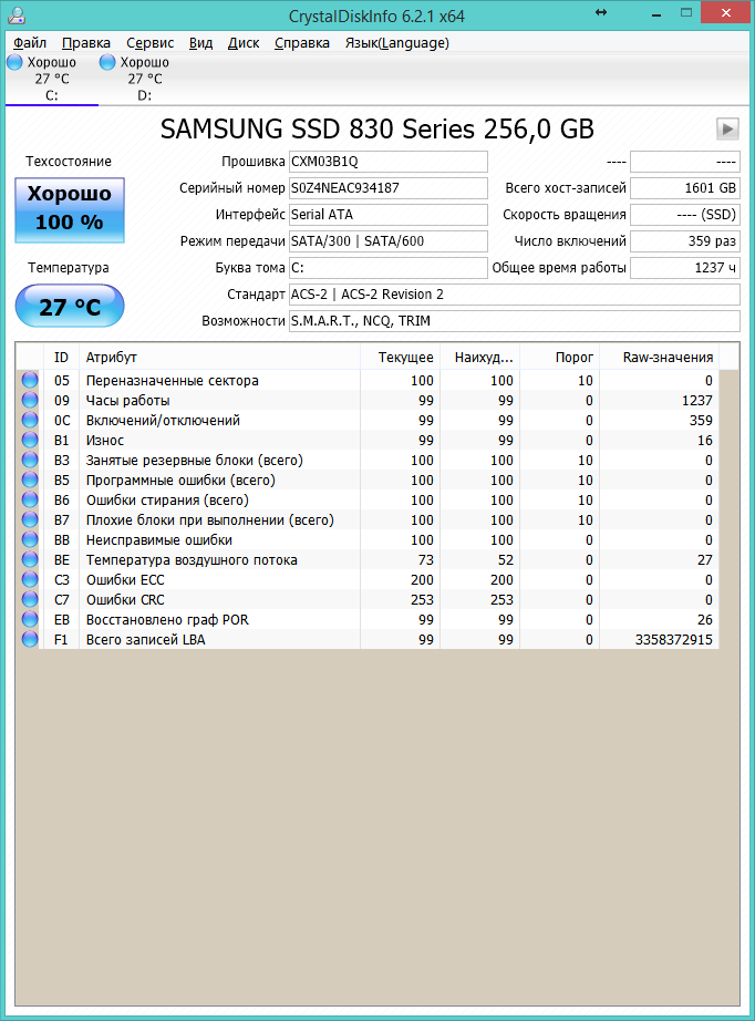Нормально для 5.3 т.ч. работы. Вот доживёт 830 до 5 т.ч. работы, вот тогда можно было б что-то точнее сказать. Я б всё же оставил бы M4 - он и объёмом больше и шустрее 830. SMART у обоих в норме. И да, прошивку нужно залить последнею. У меня два Silicon Power V70 120G в страйпе имеют куда худший SMART, однако и не думают дохнуть, отмотав 4.7 т.ч. А если M4 будет не как системный, а для файловой помойки, то вообще можно не сомневаться.