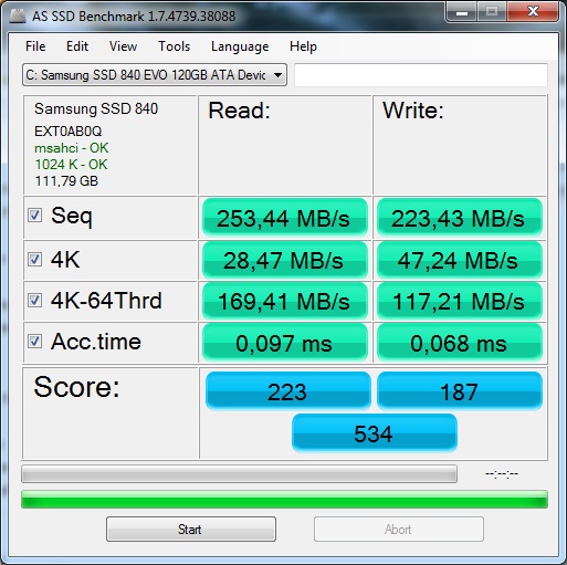 Купил вчера 120ГБ 2.5" Samsung "840 EVO" MZ-7TE120BW скорости на сата2 выложил, я так понял не удастся мне до 300мб/с производительности поднять?
