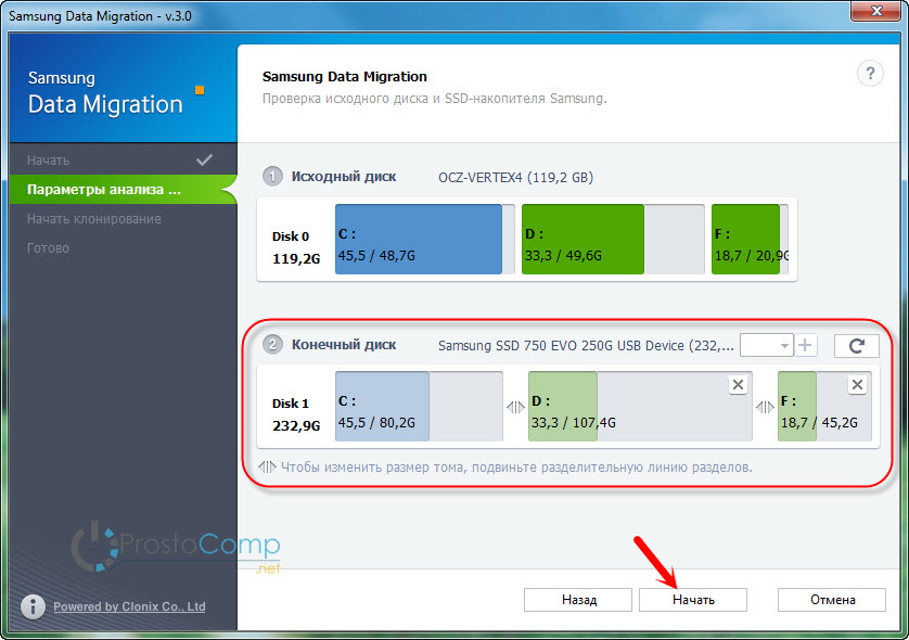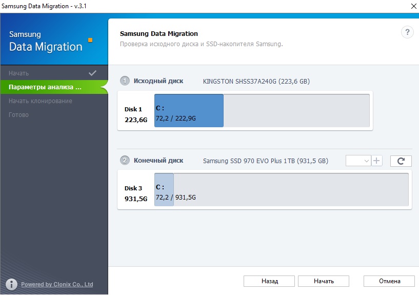 Друзья, подскажите. Приобрел Эво 970 + на 1Т. Хочу клонировать на него системный диск, но при этом разбить новый на 2 раздела, под систему и под все остальное. Но samsung data migration предлагает мне перенести системный диск на весь новый, хотя я из под винды разбил его на 2 нужных мне по объему раздела. Программа не отображает созданные на новом диске разделы! Хотя погуглив я увидел, что вроде как должна. Если удалить всю разбивку, то тоже никак не разбить во время клонирования. Что я делаю не так? Как мне клонировать систему на новый диск и при этом сделать на нем 2 раздела??? Хочу чтобы как на картинке было.