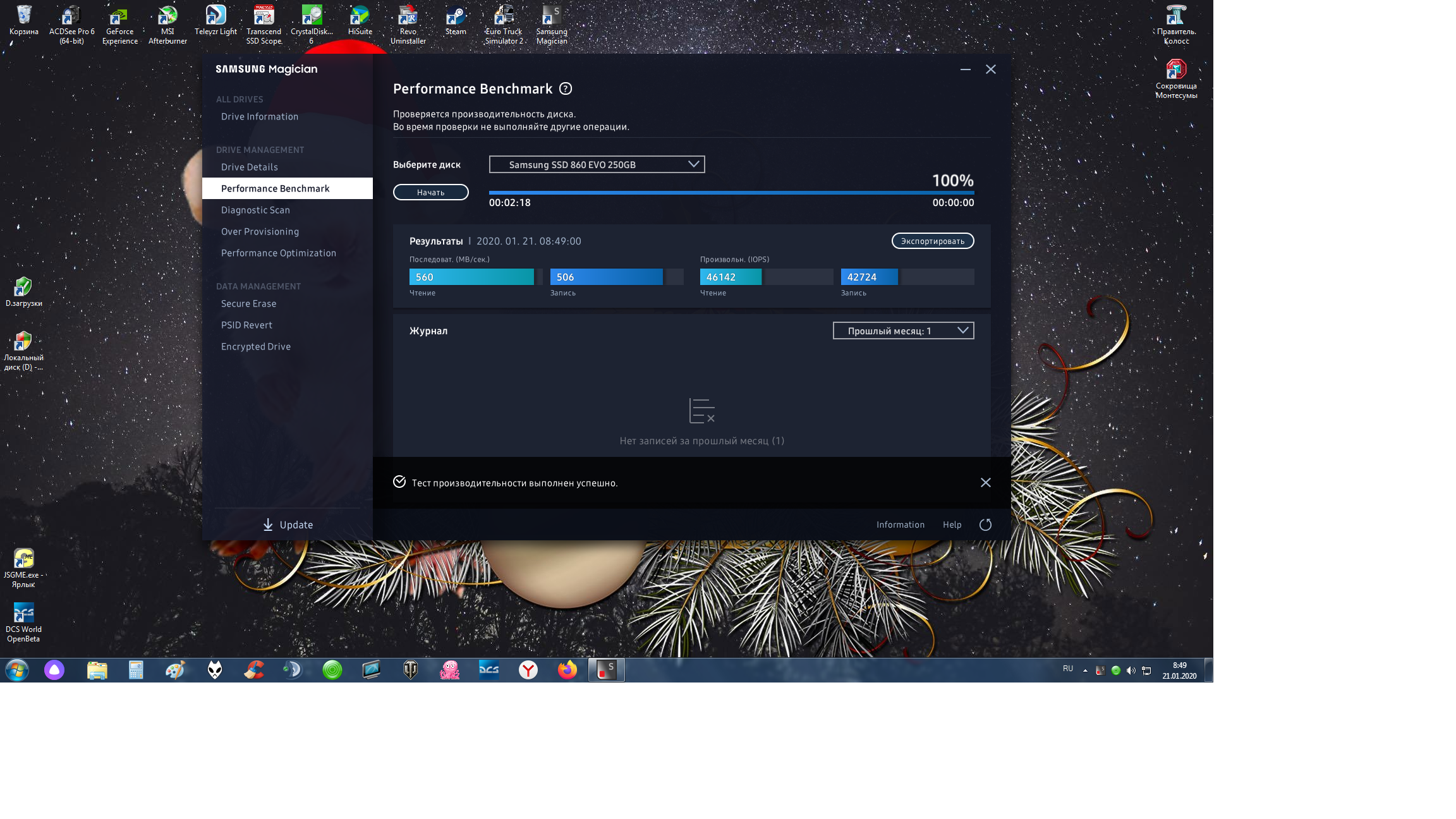 qwerttttyy Magician выдаёт такие значения: МВ/сек 1497 чтение и 1826 запись, IOPS 43457 чтение и 32714 запись. Хз, насколько это хорошо/плохо, но винде быстро стартовать и работать такого точно за глаза хватает.
